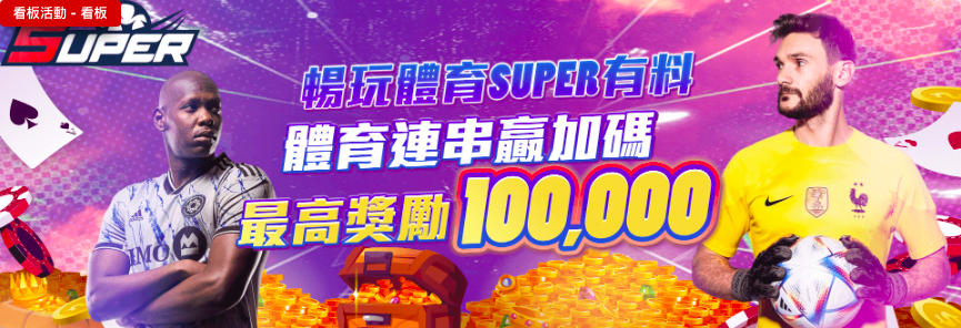 體育連串贏加碼活動,最高可獲得 100,000 元 的額外獎勵!